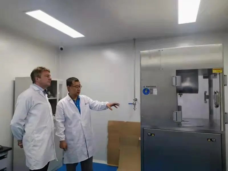 4月27日上午,比利时驻广州总领事馆商务领事Eva Verstraelen女士、科技领事Peter Tanghe先生一行到访越洋医药广州基地,科技主任李莹女士、投资总监崔的勇先生陪同来访。越洋医药创始人、董事长兼CEO闻晓光博士、首席技术官范军博士出席接待,范博士带领嘉宾参观了基地小试研发区、中试生产区、办公区、荣誉墙和多功能活动厅。董事长助理/临床总监蔡怀涵博士陪同接待,介绍了公司产品在中美注册申报、临床研究进展以及未来公司布局欧洲的设想。