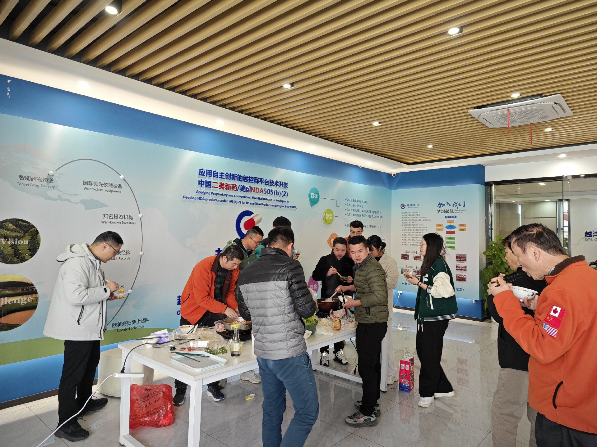 作为一家国际化的专注于固体口服缓控释新药开发的企业,Potluck这一极具国际化色彩的活动一直是越洋人庆祝双DAN的传统方式。在活动当天,每人自制一道诚意满满的菜品,与身边的小伙伴分享美味。今年,我们看到摆上餐桌的菜品有真材实料的水煮肉片,鲜甜可口的糍粑,配菜丰富的火锅,馅料多样的水饺,鲜嫩爽口的凉拌鸡架,咸鲜兼具的皮蛋豆腐,菜品五花八门,各具特色。